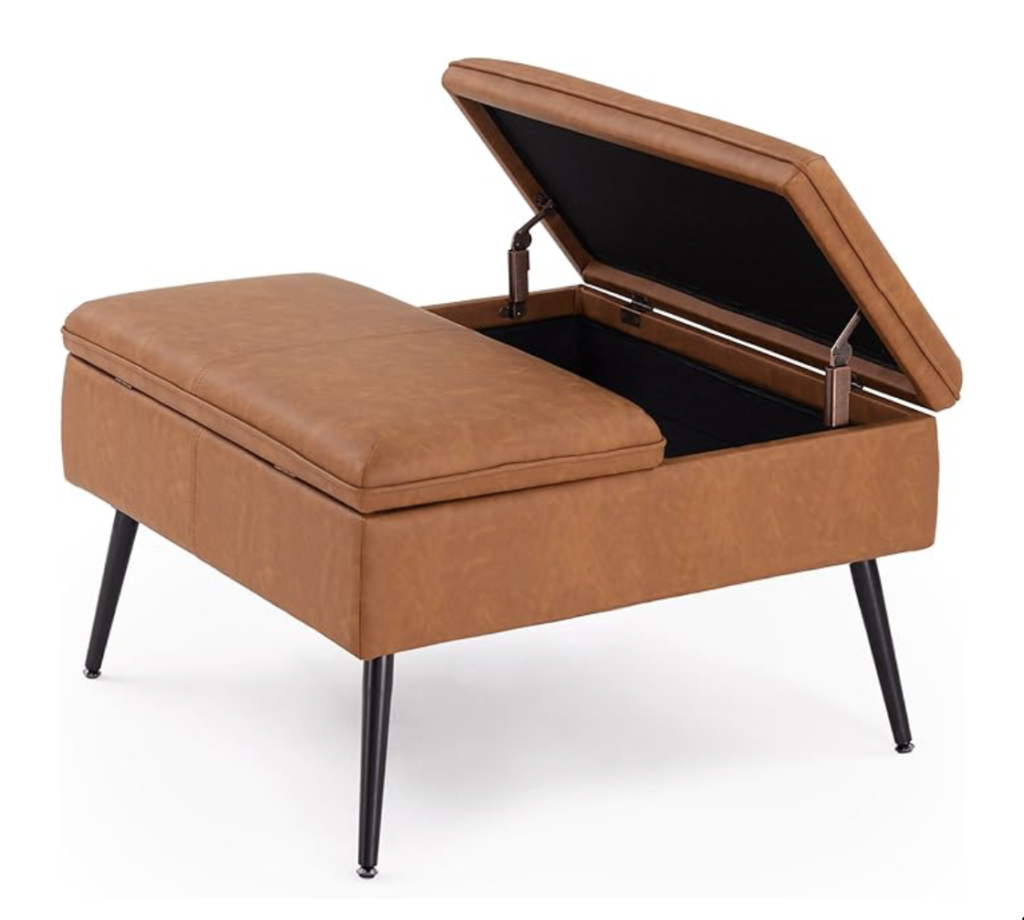 Storage is always at a premium in short-term rentals, and this ottoman earns its place by doing more than one job. At first glance, it reads as a stylish accent piece—clean-lined, neutral, and easy to style. But the hidden storage is where it truly shines for rentals.