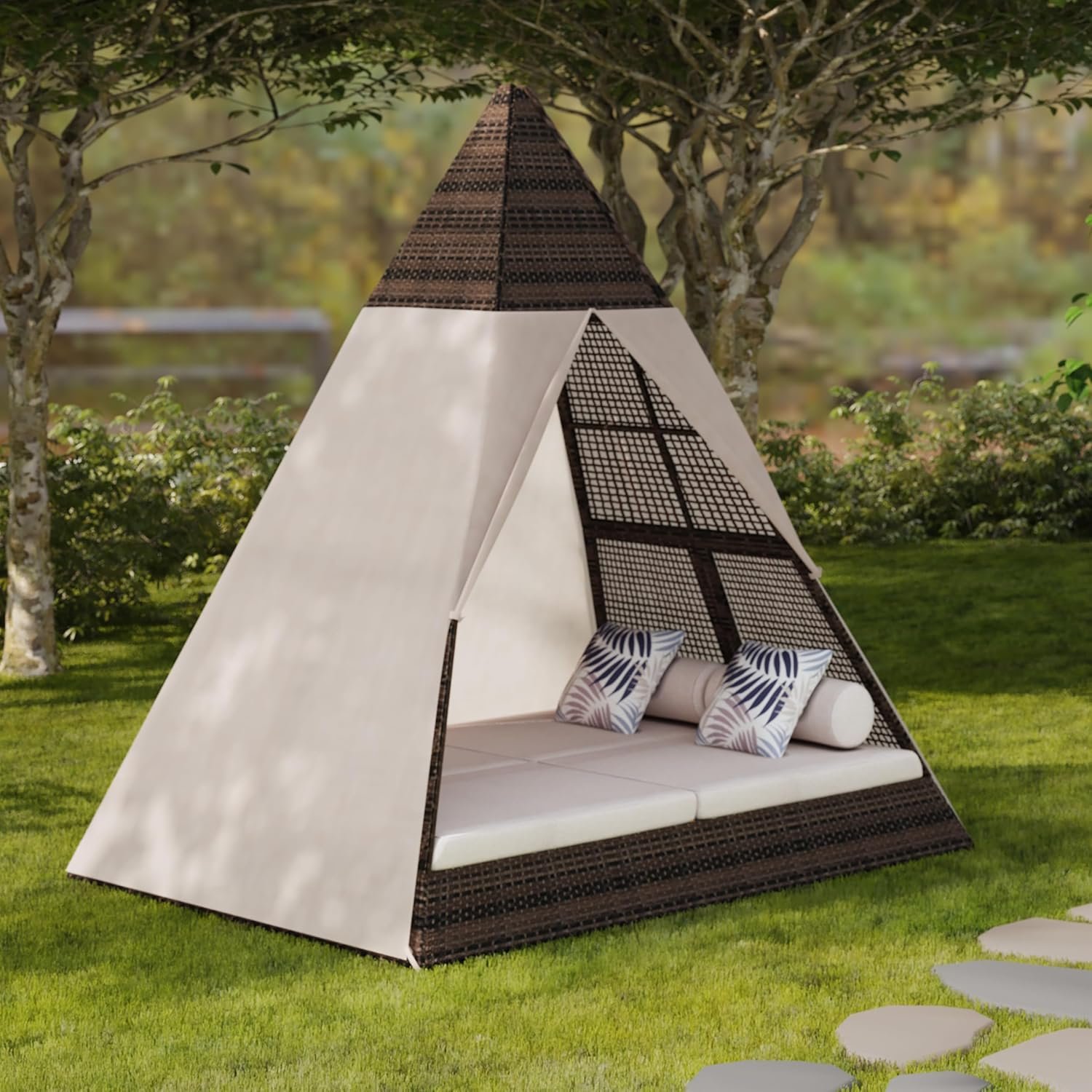 We have this pyramid daybed at our Pocono Mountains Airbnb — designed for group stays, family getaways, and guests who want to spend real time outdoors.